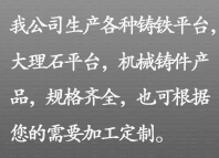 全意鑄鐵平臺平板廠家專注生產(chǎn)T型槽鑄鐵平臺,大理石氣浮實驗石平臺,han接鑄鐵平臺,裝配鑄鐵平臺,檢測測量大理石平臺,試驗鑄鐵平臺,測量大理石平板,T型槽平臺,電機試驗平臺,三坐標測量平臺等鑄鐵平板來圖加工定做業(yè)務(wù),以合理的價格,專注的技術(shù)服務(wù)于國內(nèi)外客戶,互利合作,共同發(fā)展!公司位于河北交河開發(fā)區(qū),京滬鐵路、104國道、106國道、京福高速公路橫穿而過,與我國的兩大直轄市北京、天津近在咫尺,地理位置優(yōu)越,交通非常便利。我公司本著以誠納客”“嚴把質(zhì)量關(guān)”“價格優(yōu)惠”“用戶至上的原則,幾十年兢兢業(yè)業(yè),受到用戶的一致好評!